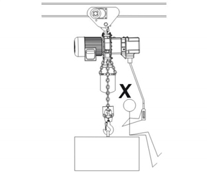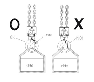 1、勿以吊鉤末端吊物應掛入安全舌片內以策安全如下圖: