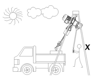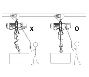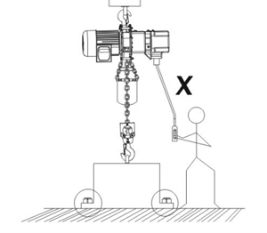 7、操作時嚴禁人員在吊運物下行走或前進方向以及嚴禁通過人員上方如下圖:
