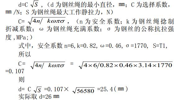 所以,與撬塊設備相匹配的是直徑為 26 ㎜,規(guī)格為6×7+IWR,強度級別為 1770Mpa 的鋼絲繩。