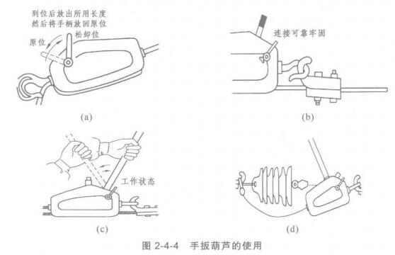 手扳葫蘆的使用:手扳葫蘆的使用示意圖如圖2-4-4所示