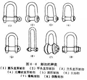 根據(jù)使用要求的不同,卸扣的形狀和結(jié)構(gòu)各異,漁具上使用的卸扣主要有下列幾種,如圖6-6所示: