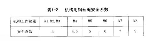 2、鋼絲繩安全系數(shù)不應小于表1-2和表1-3的要求