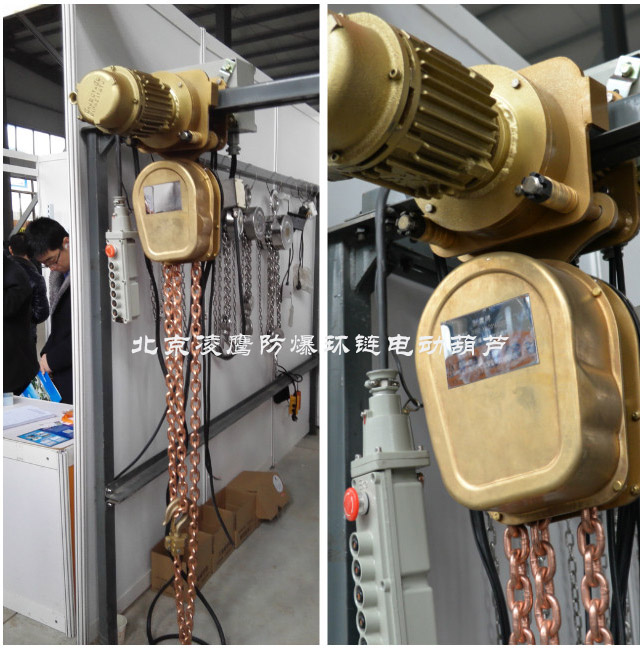 防爆環鏈電動葫蘆廣泛應用于石油、石化、油站、油庫、采氣、化工、軍工、電力、礦山、電子、鐵路、等潛在火患和爆炸的危險環境中。在作業中產品相互摩擦撞擊不會產生機械火花,在易燃易爆場所不引爆氣體,有效防止火災事故,確保國家財產和人身安全。